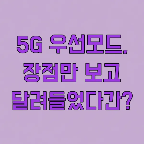 요즘 길을 걷다 보면 '5G'라는 글자를 정말 많이 보게 되죠? 저도 처음에는 '무조건 5G가 최고지!' 하고 5G 우선모드로만 사용했어요. 그런데 가끔 데이터가 너무 안 터지거나, 배터리가 광탈하는 느낌을 받을 때마다 '이게 맞는 걸까?' 싶더라고요. 그래서 오늘은 제가 직접 경험하고 느꼈던 5G 우선모드와 LTE 우선모드에 대한 솔직한 후기를 풀어놓으려고 합니다. 여러분도 혹시 저처럼 헷갈리셨다면, 오늘 이 글을 통해 속 시원하게 해결하고 가셨으면 좋겠어요!