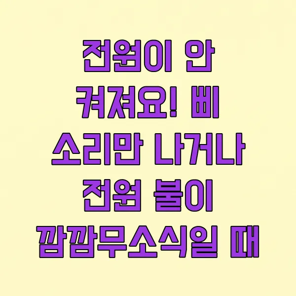전원이 안 켜져요! 삐 소리만 나거나 전원 불이 깜깜무소식일 때
